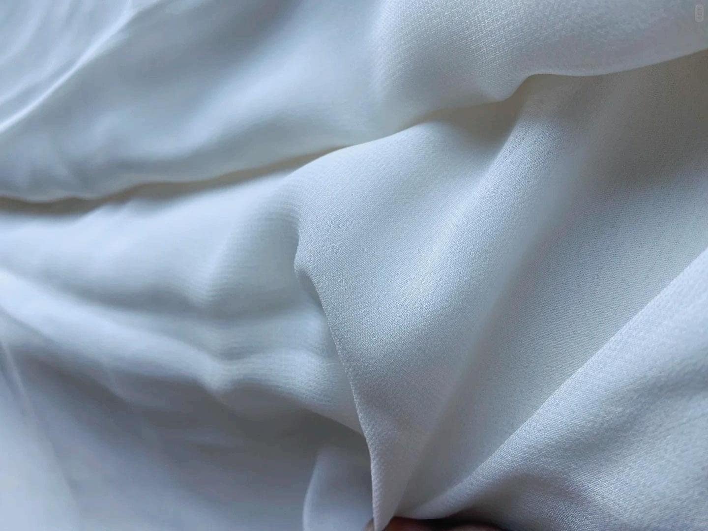 - Textured Surface – The high-twist yarns give it a slightly crinkled, pebbly texture, adding depth and visual interest compared to smoother fabrics like chiffon.